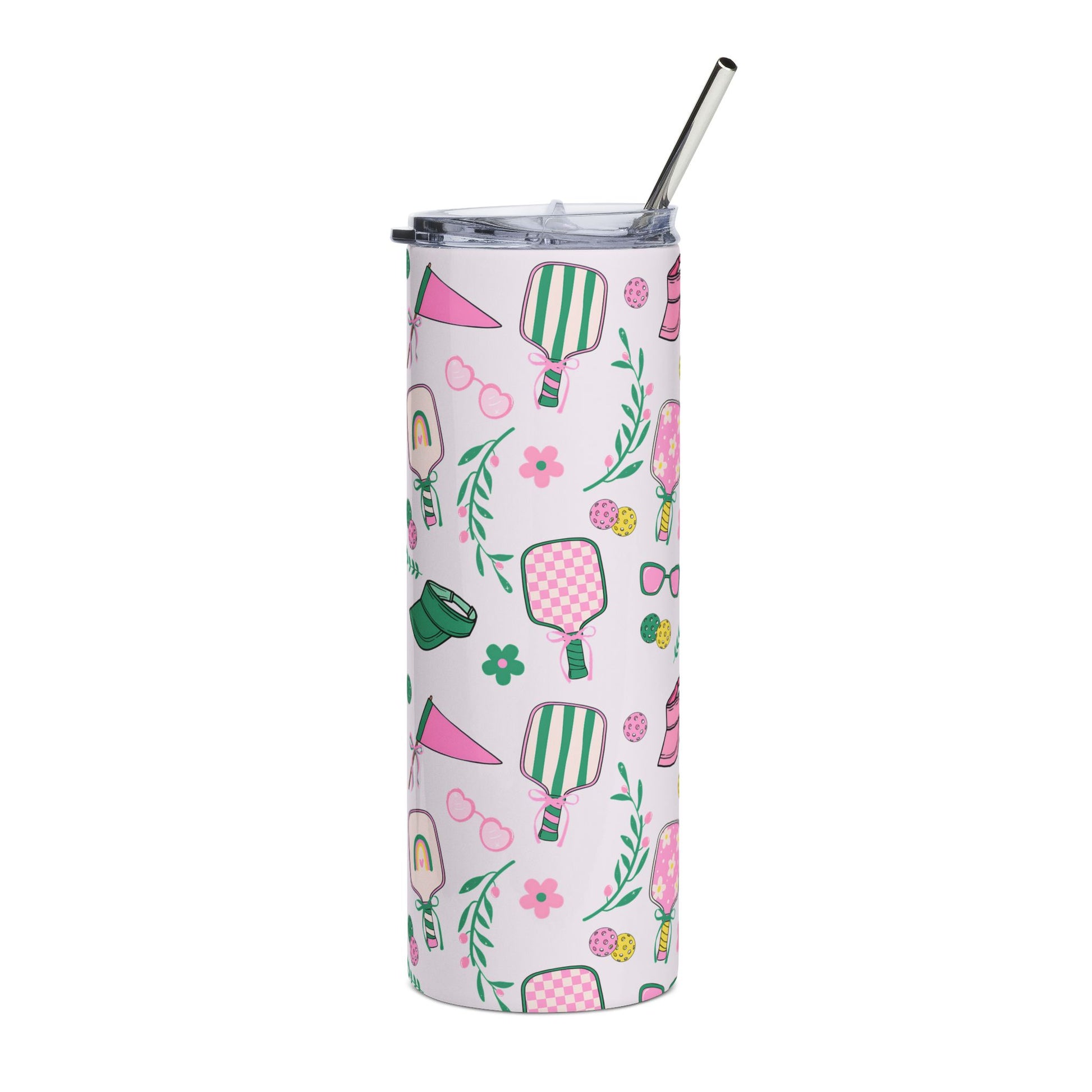 20oz Tumbler — Pink Pickleball Paddle Pattern Stainless Steel Travel Cup