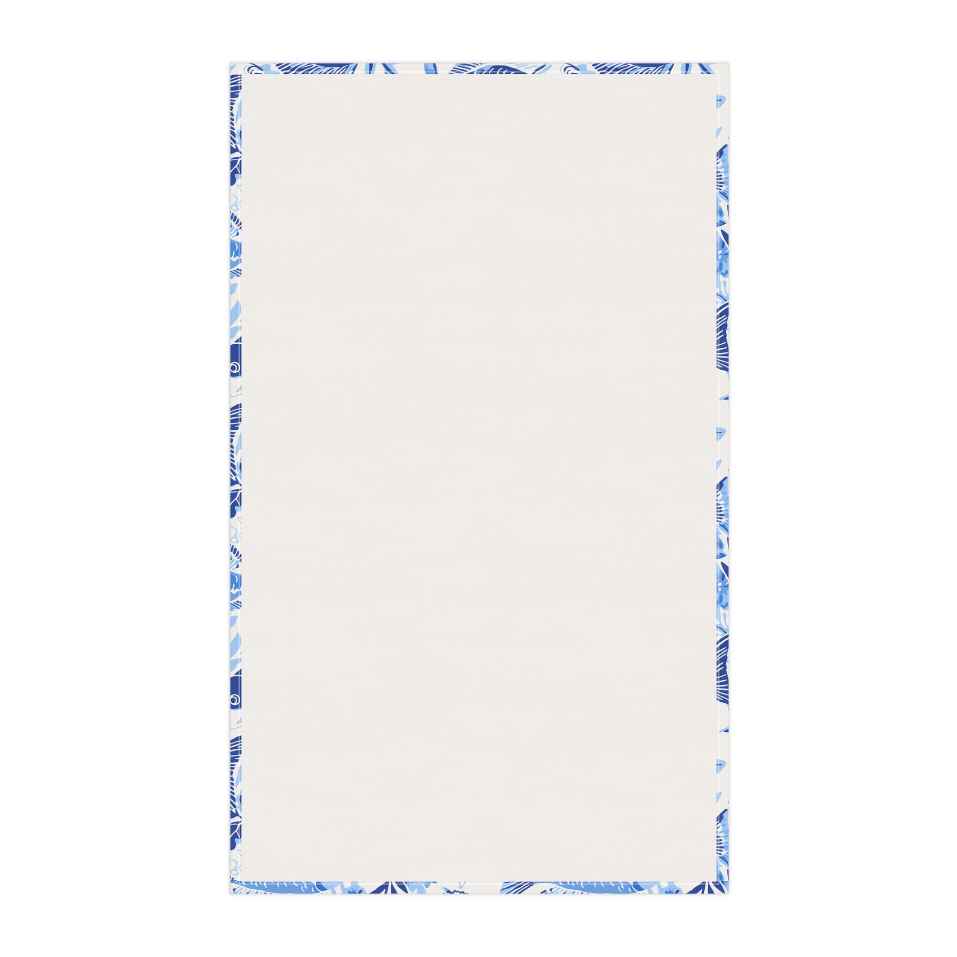 Salt air and morning light—this cotton or polyester kitchen towel brings seaside calm to your everyday moments. Hand-drawn fish and seaweed swim across crisp blues and indigos, creating a layered, painterly pattern that still feels fresh and modern. Lightweight and quick to handle, it slips easily from hook to hand: use it to dry a single breakfast dish, pat herbs, or fold over the oven door as you pull out a tray. The hemmed edges hold up wash after wash, a soft, absorbent cotton twill. If your kitchen leans coastal, cottage, or artist-studio, this towel quietly completes the scene.