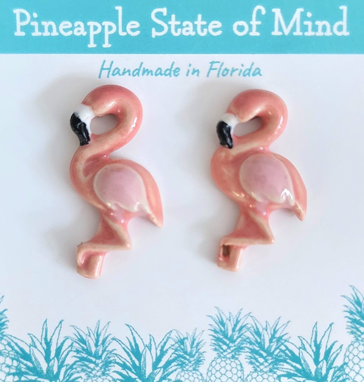 Handmade porcelain pink flamingo stud earrings.