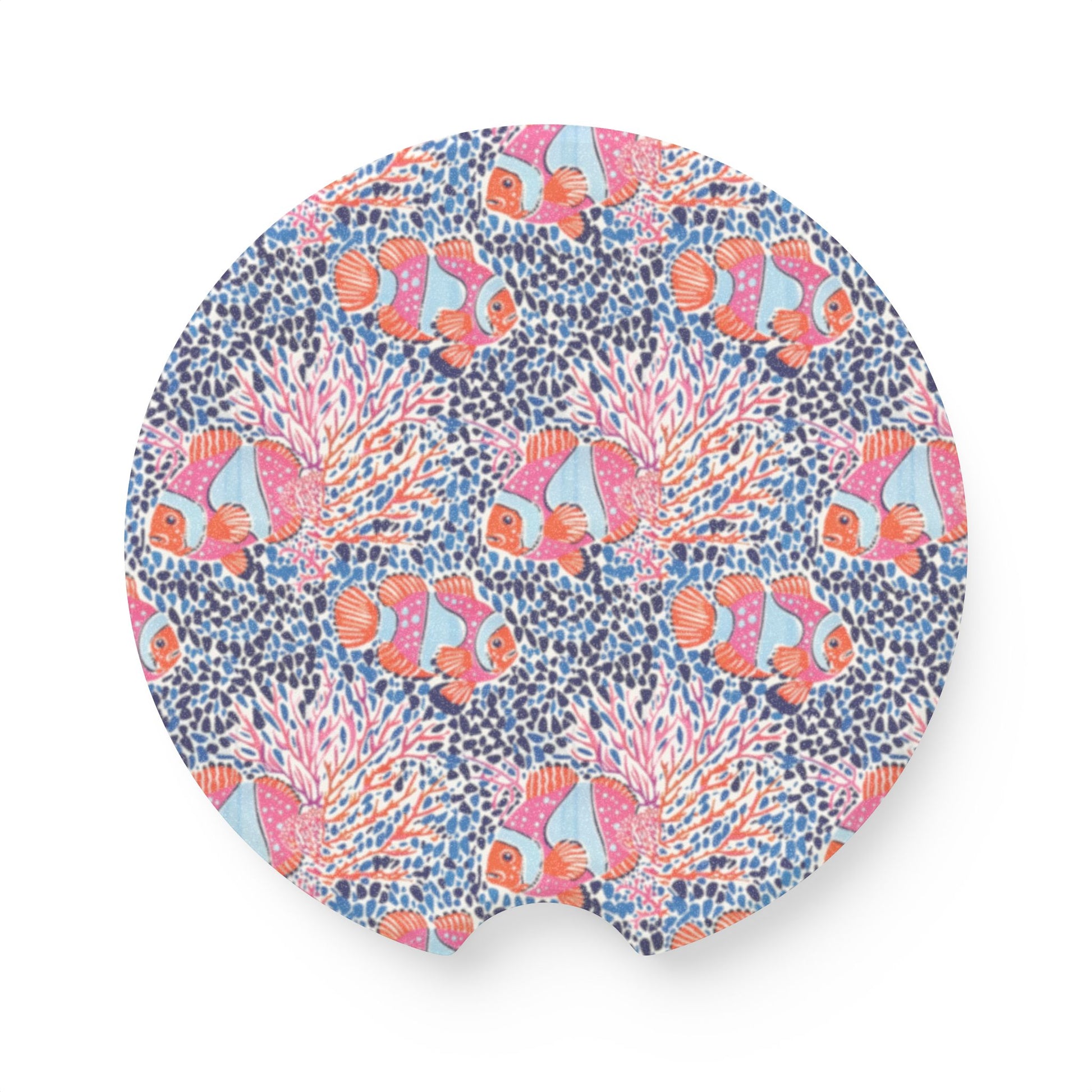 Clownfish Coral Soapstone Car Coaster — Colorful Ocean Reef Drink Holder