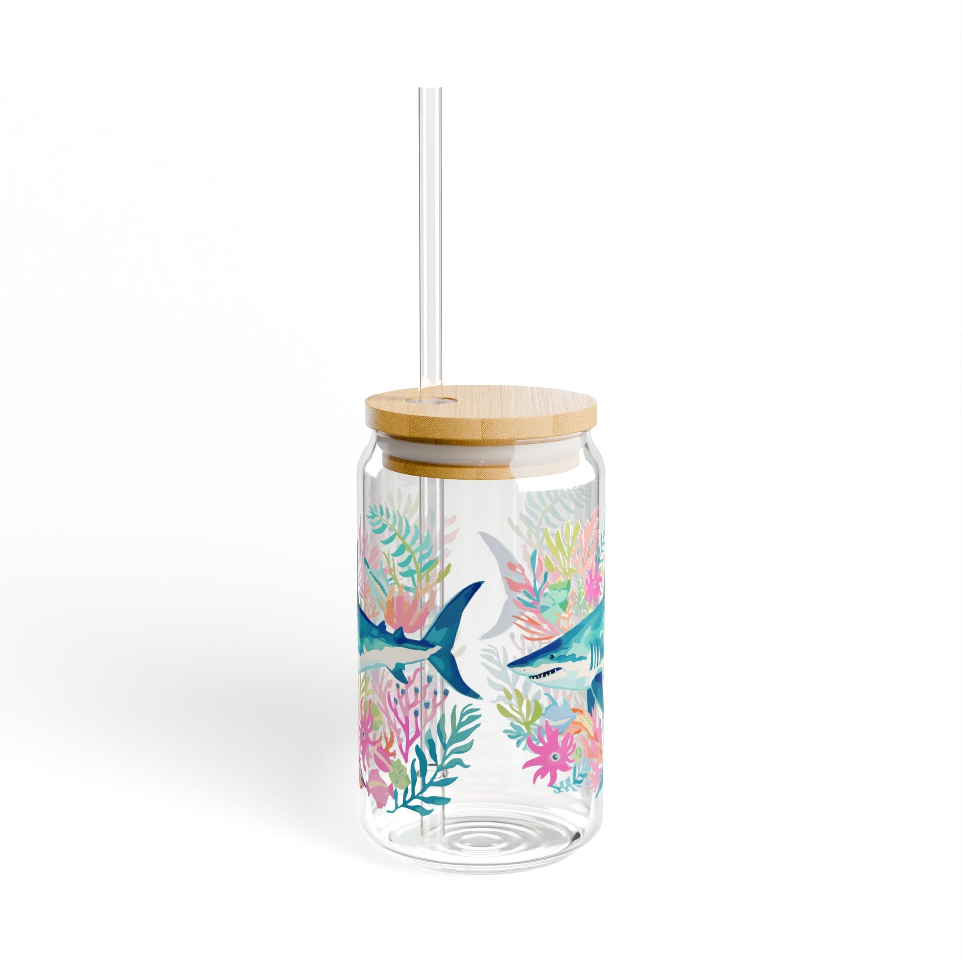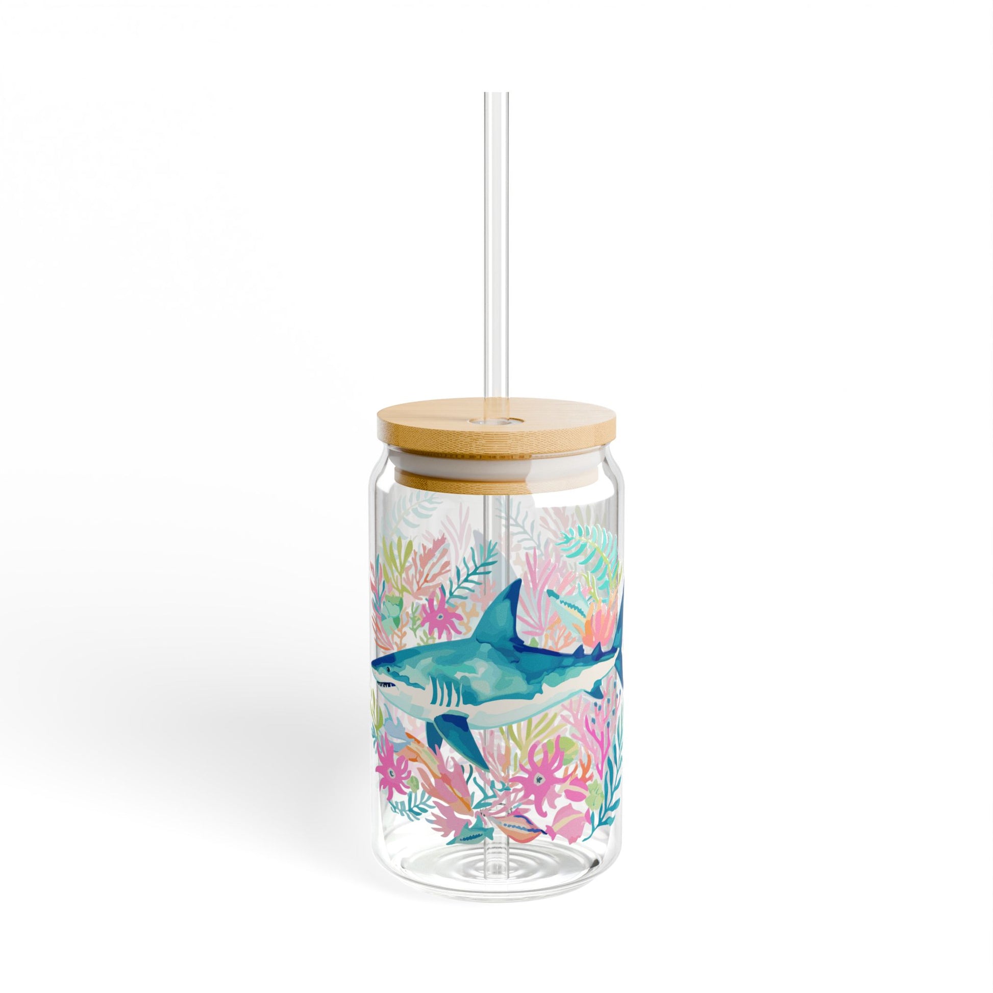 Eco-Friendly Summer Drinkware, Tropical Sipper Glass, 16oz | Shark Design, Party Accessory, Gift for Sea Life Ocean Lovers