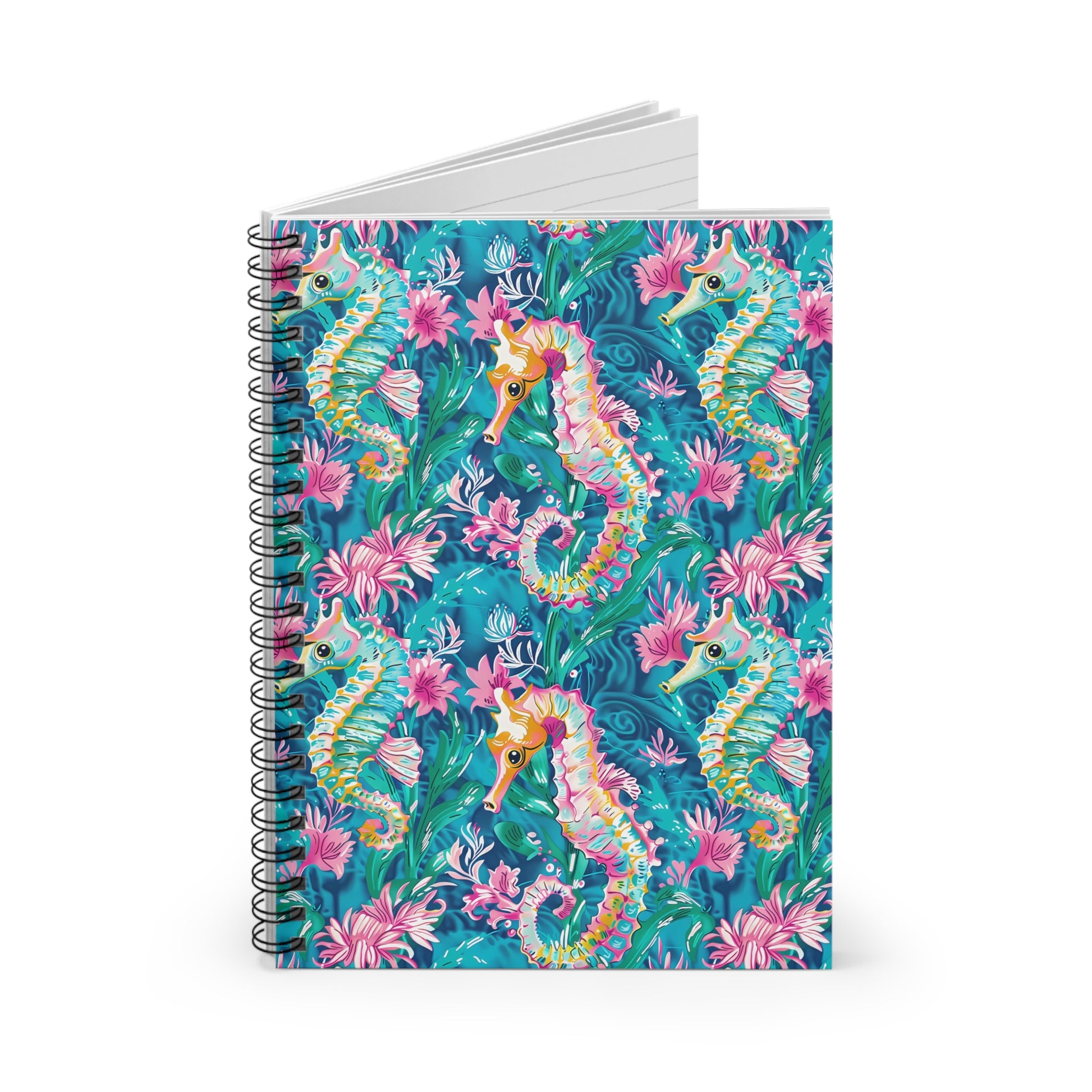 Blue Seahorse Floral Spiral Notebook — Ruled Journal for School & Beach Notes