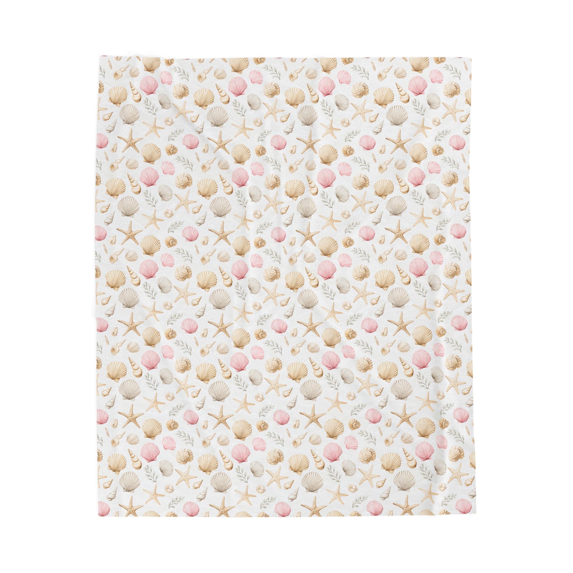 Seashell & Starfish Velveteen Plush Blanket — Coastal Beach Pattern