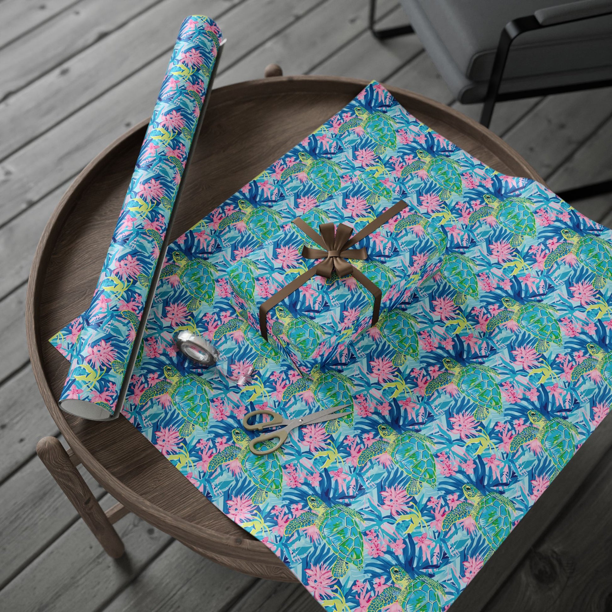Gift Wrap Tropical Floral Sea Turtle Wrapping Paper, Vibrant Gift Wrap, Eco-Friendly Wrapping, Birthday, Holiday, Party Decor