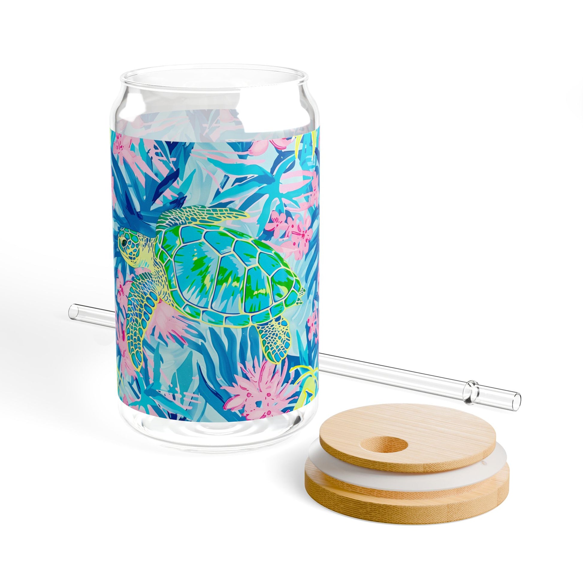 Eco-Friendly Summer Drinkware, Tropical Sipper Glass, 16oz | Sea Turtle Design, Party Accessory, Gift for Ocean Lovers