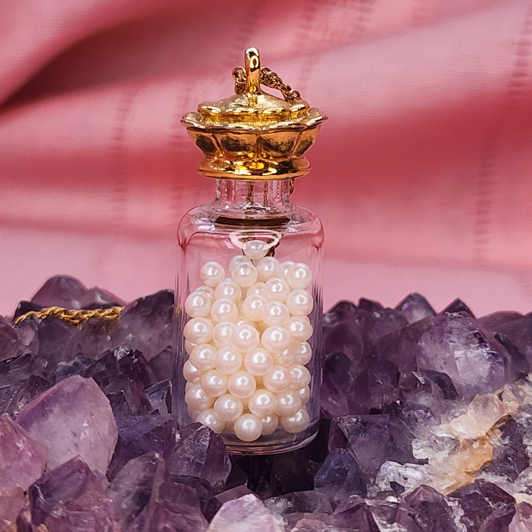 Very romantic necklace with pearls in a bottle, like capturing the seas treasures.